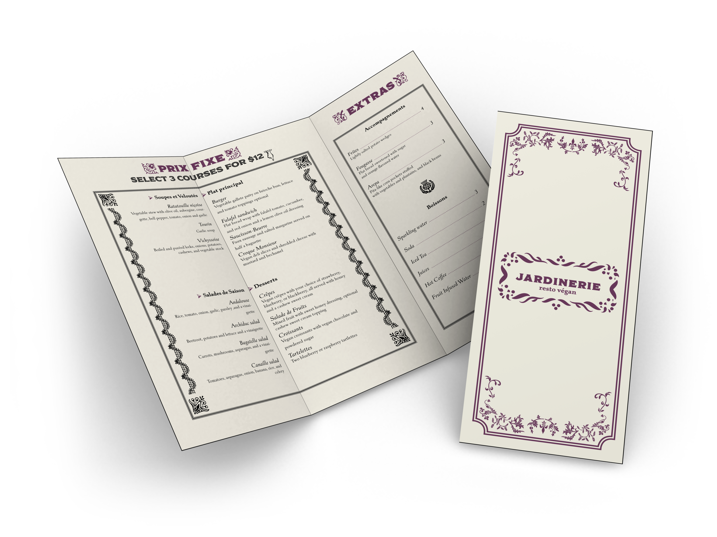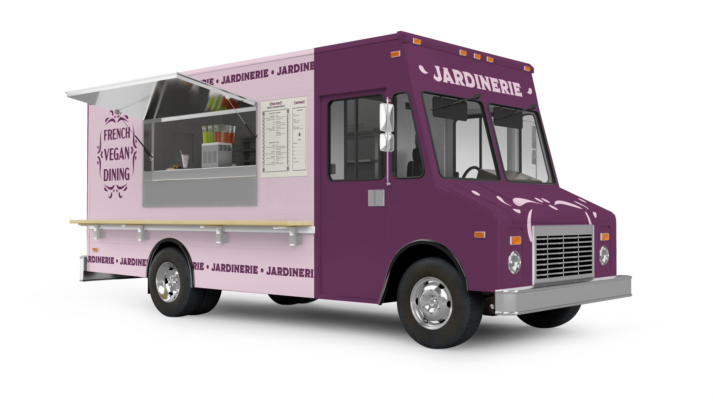 Here’s some concepting for an all vegan food truck. I was inspired by French design and thought it’d be cool if I could make this an intersection of French cuisine, take out, and vegan food - 3 things you don’t usually associate with one another.